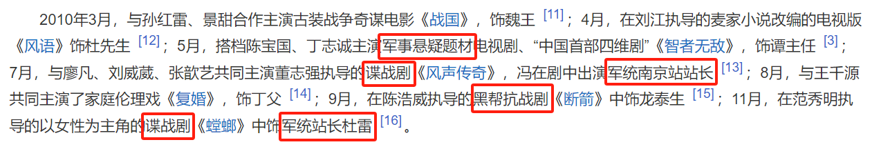 其后,许多同类型的剧找到他,连变装都是“军统站长”,这样他心惊胆颤,不知该不该演。