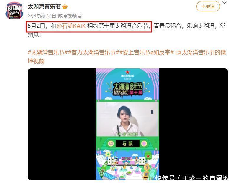 4月24日,太湖湾音乐节官方账号发文示意5月2日,石凯会插足太湖湾音乐节,但愿全球在常州见。