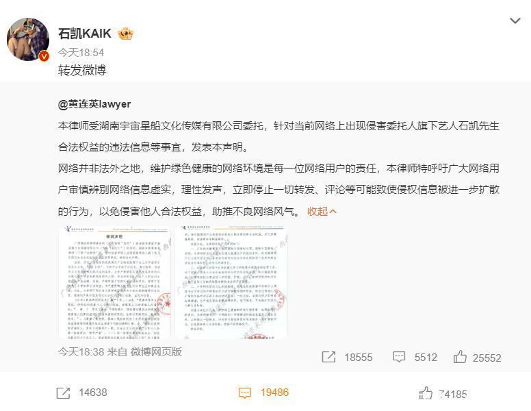 面临这种情况,石凯方面很快作念出反映,他转发了一封讼师函,辟谣出轨、PUA女性、非和平离婚等信息,还说被东说念主以侮辱、降低的样式坏心贬损声誉。