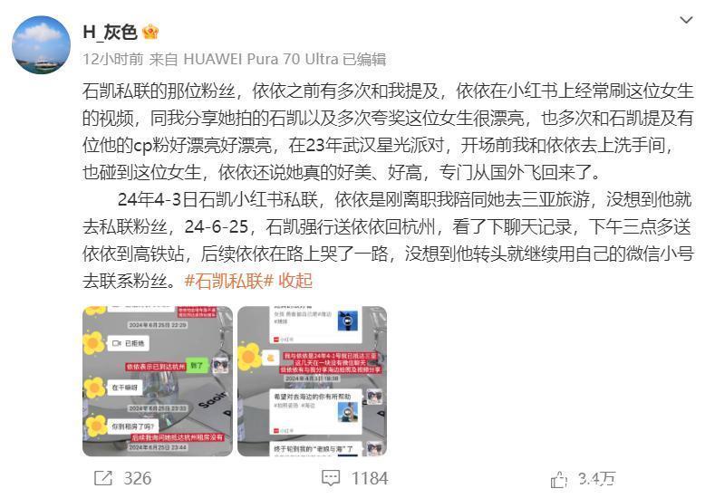 猛料是石凯不仅出轨,还屡次私联好意思女粉丝。